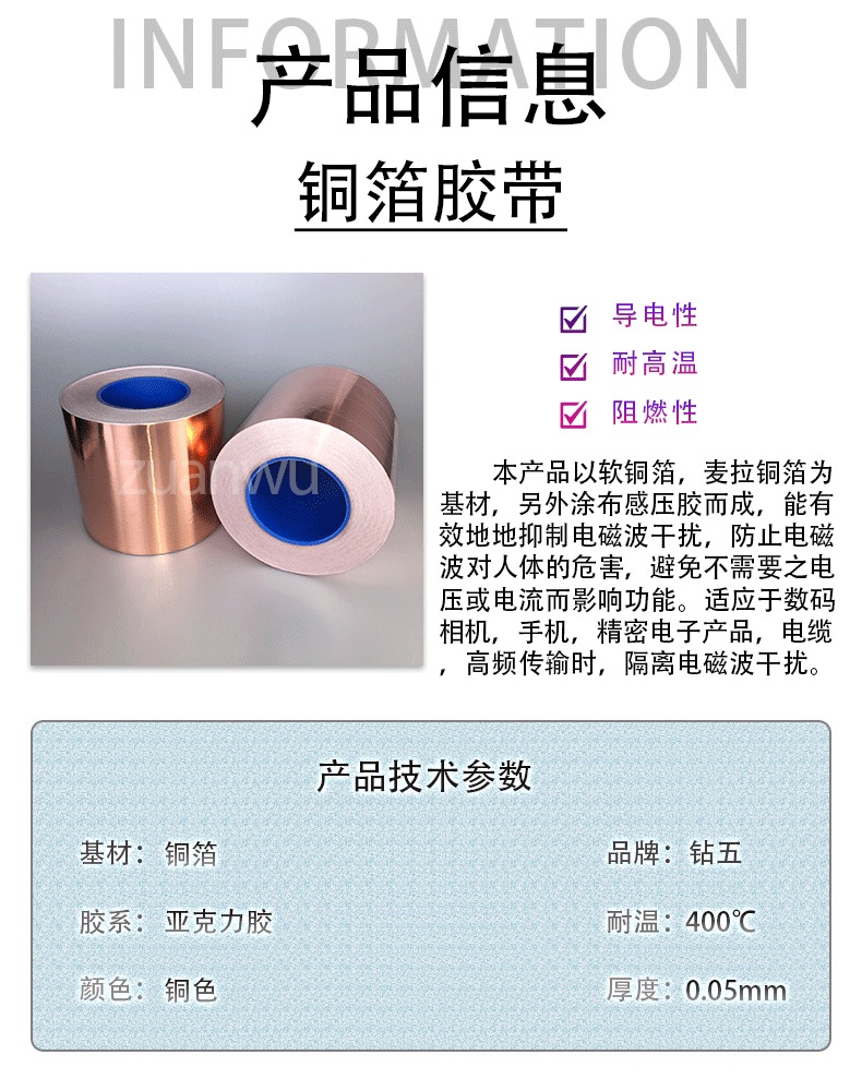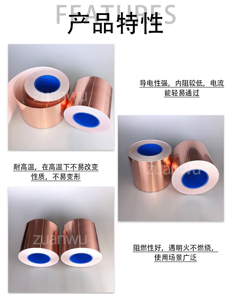 Summary: This product is made from soft copper foil and Mylar copper foil as the base material, coated with a pressure-sensitive adhesive. It effectively suppresses electromagnetic wave interference, prevents harm to the human body from electromagnetic waves, and avoids unnecessary voltage or current affecting its function. Suitable for digital cameras, mobile phones, precision electronic products, cables, and high-frequency transmission, to isolate electromagnetic wave interference.