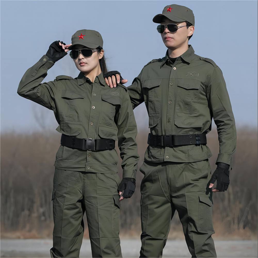 昆明高中军训服装玉溪现货订制服装厂棉纺长裤套装海洋蓝色