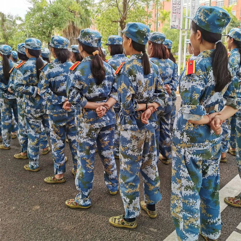 贵阳大学军训服装现货定制服装厂毕节丛林草绿棉纺长裤套装