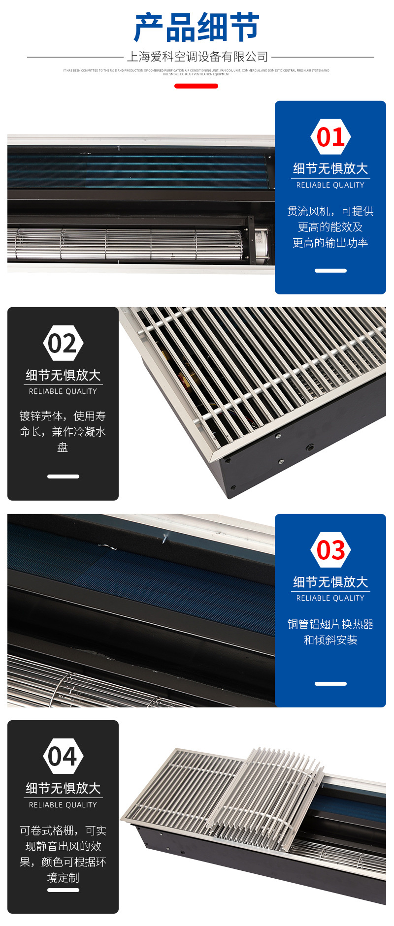 【Heat Exchanger】: Copper-aluminum finned heat exchange element made from high-quality copper tubes and hydrophilic aluminum foil, featuring a compact structure, high heat exchange efficiency, and smooth condensate drainage.