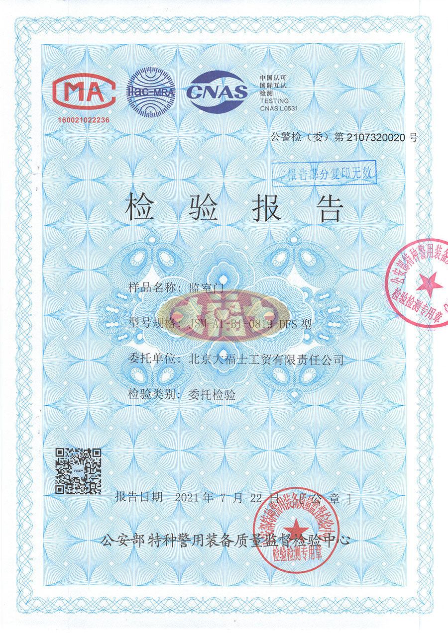 监室门检测报告_Honor Qualification Co., Ltd._Beijing Dafusi Industrial and Trade Co., Ltd._Zhongshang 114 Industry Resources Network