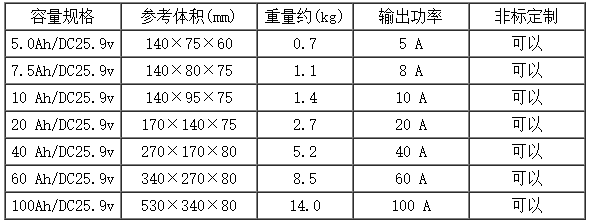 产品规格:5.0Ah/DC25.9v