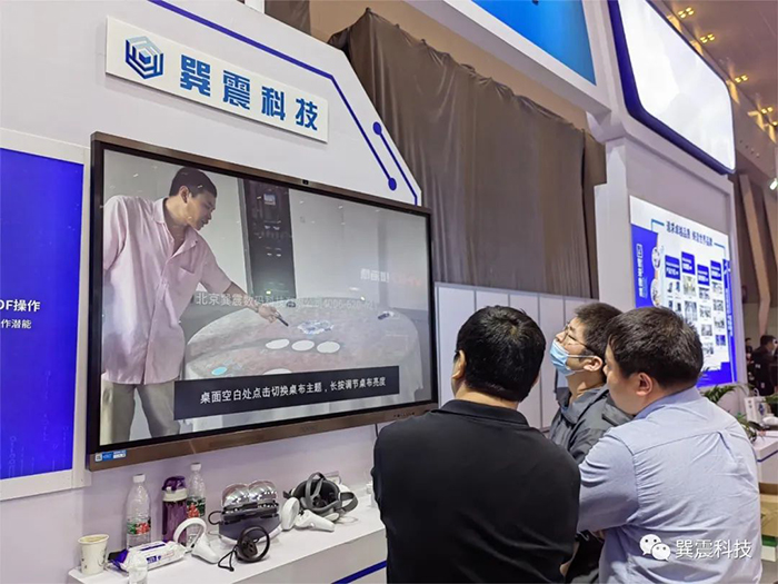 巽震科技在现场精彩展示VR头盔、MR头盔等硬件设备,并带来智慧旅游实训平台、实景互动教学系统、MR混合现实互动系统等多个创新产品,让现场的领导及新老客户更深入、直观地了解产品功能特点。