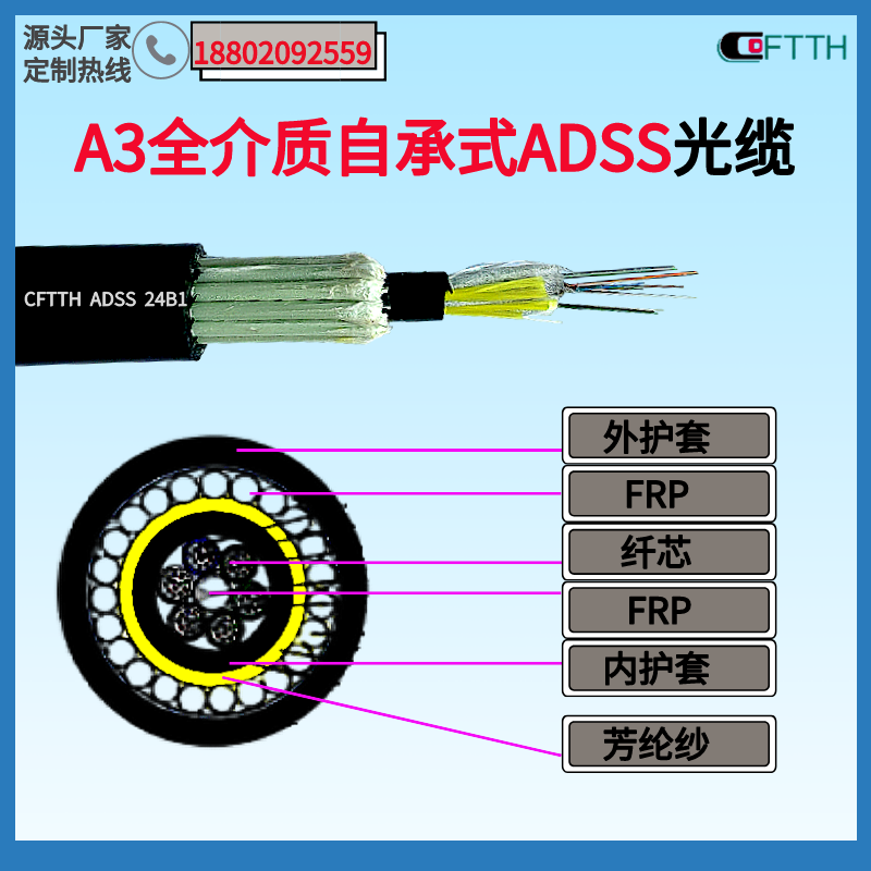 Home > News Center Co., Ltd. > 24-core FADSS Non-metallic Full-featured Self-Supported Optical Fiber Cable, A3 Non-metallic Ratproof Fiber Cable, Overhead Optical Fiber Cable