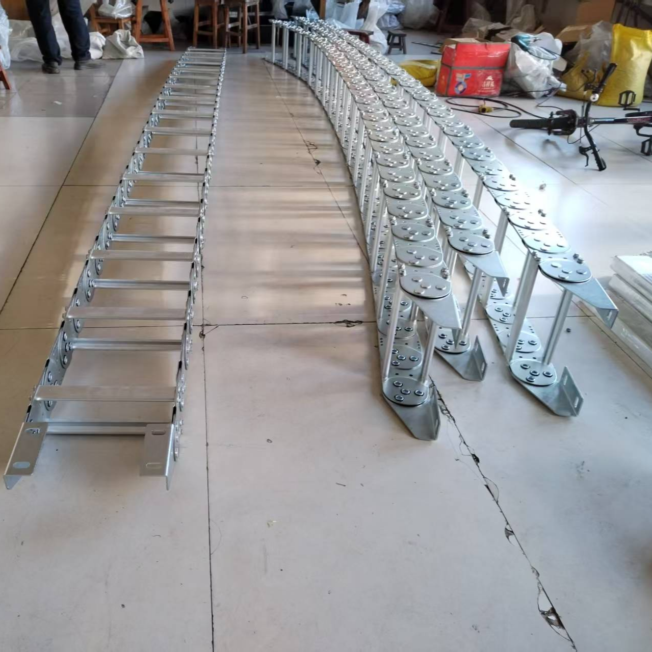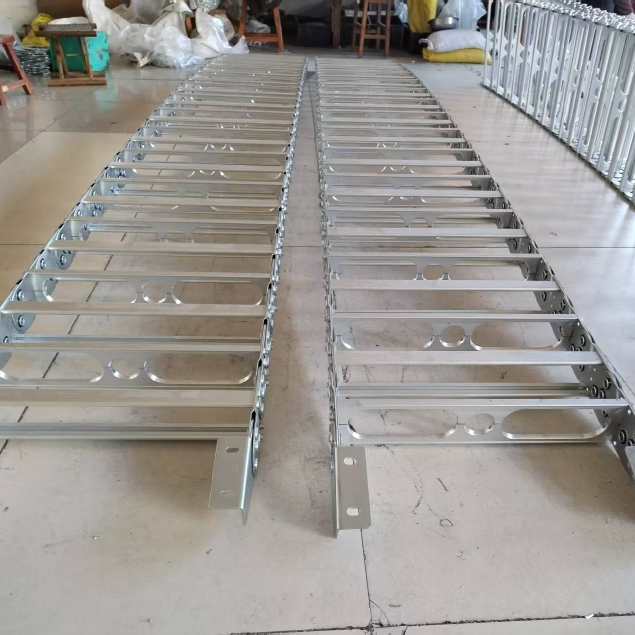 钢制拖链是一种用于工业设备中电缆、油管、气管等管线防护的机械装置,具有高强度、耐磨、低噪音等特性,广泛应用于数控机床、自动化机械等领域。