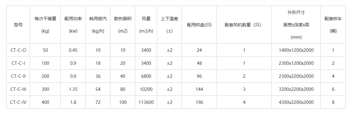 Advanced hot air circulation oven products, meticulously designed and continuously updated by our company, have reached the forefront of technology. This equipment is a cabinet-type, easily assembled and disassembled, and includes a series of CT models (centrifugal fan) and CT-C models (axial flow fan). It utilizes steam and electricity as heat sources, heated by heaters, and achieves heat air circulation within the cabinet. Fresh air is continuously replenished through the inlet and expelled through the exhaust port, enhancing heat transfer efficiency and gradually reducing moisture content in the material inside. Our ovens are equipped with low-noise, high-temperature-resistant axial fans and an automatic temperature control system. The entire circulation system is fully enclosed, improving the oven's thermal efficiency from the traditional 3-7% to the current 35-40%, with a potential efficiency of up to 70%. This equipment was issued with national industry standards by the National Administration in 1990, with the same model designated as RXH.
