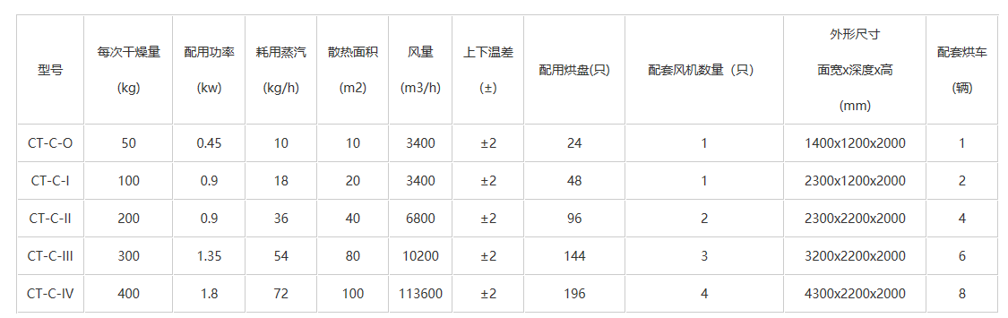 The unit is equipped with adjustable air distribution baffles, utilizing forced ventilation to ensure even drying of materials. Heat sources can be steam, hot water, electricity, or far-infrared, offering a wide range of options.
