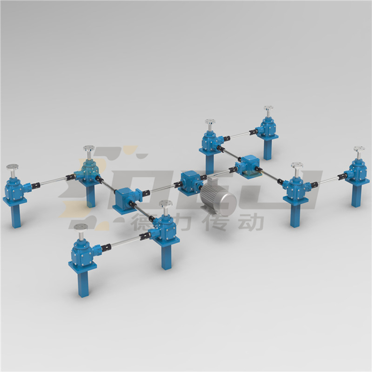 The lifting platform of the screw jack, be it a two, three, or four-way drive, we recommend using a single motor to power it, as each motor has a speed variance per minute. It's challenging to achieve synchronization and stability when using multiple motors.