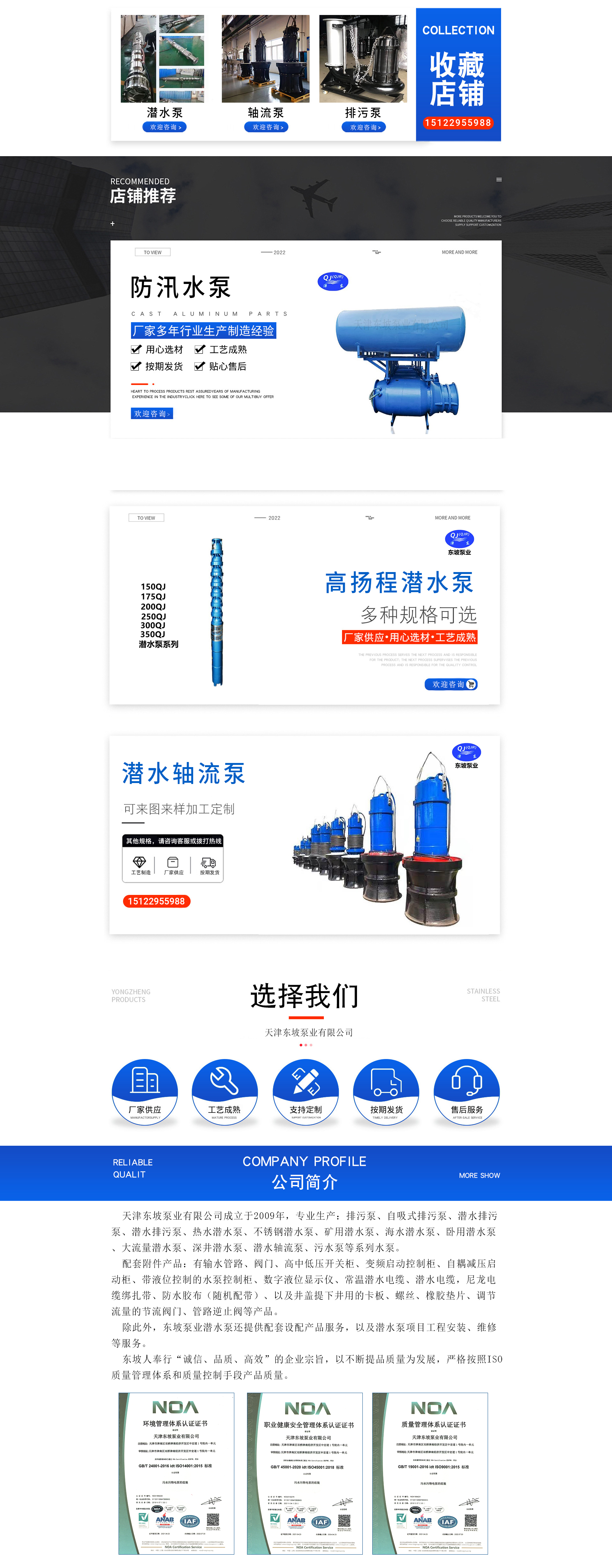 天津东坡泵业有限公司成立于2009年,专业生产:排污泵、自吸式排污泵、潜水排污泵、潜水排污泵、热水潜水泵、不锈钢潜水泵、矿用潜水泵、海水潜水泵、卧用潜水泵、大流量潜水泵、深井潜水泵、潜水轴流泵、污水泵等系列水泵。配套附件产品:有输水管路、阀门、高中低压开关柜、变频启动控制柜、自耦减压启动柜、带液位控制的水泵控制柜、数字液位显示仪、常温潜水电缆、潜水电缆,尼龙电缆绑扎带、防水胶布(随机配带)、以及井盖提下井用的卡板、螺丝、橡胶垫片、调节流量的节流阀门、管路逆止阀等产品。 除此外,东坡泵业潜水泵还提供配套设配产品服务,以及潜水泵项目工程安装、维修等服务。 东坡人奉行“诚信、品质”的企业宗旨,以不断提品质量为发展,严格按照ISO质量管理体系和质量控制手段产品质量。东...