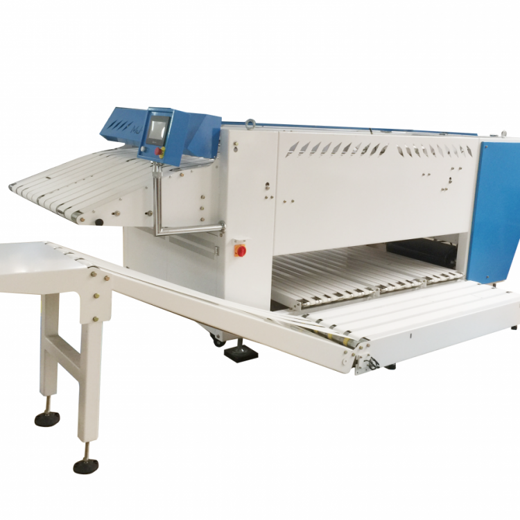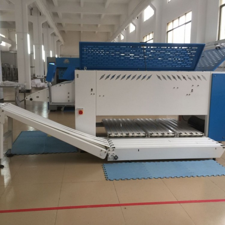 The automated equipment for towel folding developed by our company, with a towel folding speed of up to 50m / min, can fold 900 to 1200 towels, 4 folding times, and folding specifications of 1200 * 1800mm. The control system adopts touch screen computer for automatic control, and the man-machine interface transmits operating information, which can automatically reduce labor costs and increase labor productivity.