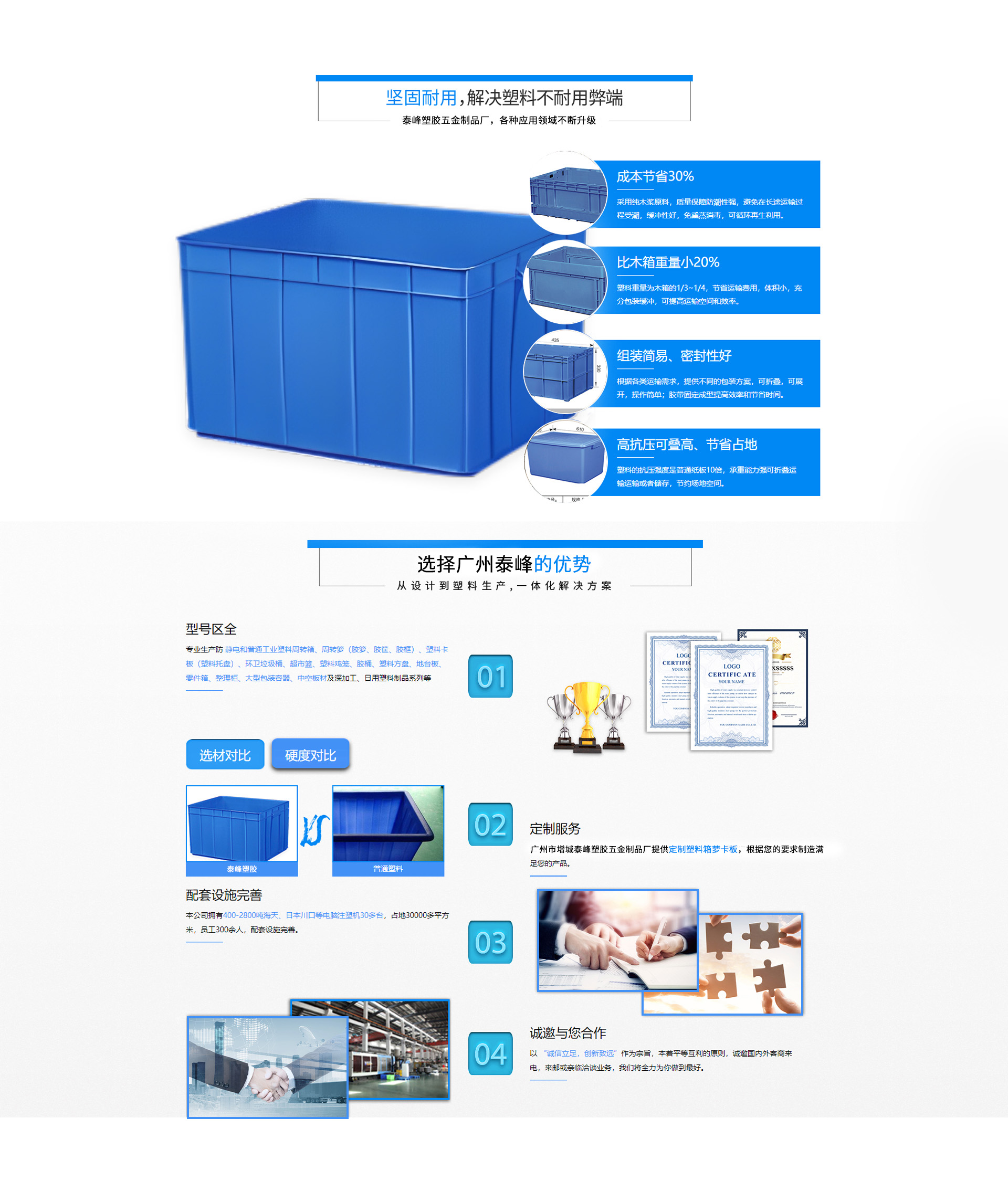 Guangzhou Zengcheng Taifeng Plastic & Hardware Products Factory is a company specializing in the production and processing of plastic pallets, containers, plastic baskets, Toyota EU boxes, Nissan folding boxes, Honda HP boxes, honeycomb boards, honeycomb boxes, anti-static products, plastic water towers, and more. It boasts a comprehensive and scientific quality management system. The integrity, strength, and product quality of Guangzhou Zengcheng Taifeng Plastic & Hardware Products Factory have been recognized by the industry. Welcome friends from all walks of life to visit, guide, and engage in business negotiations.