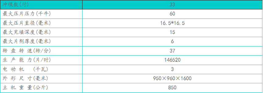 I. Main Application: This machine is used to compress various granular raw materials into round sheet shapes, serving as a fundamental equipment suitable for mass production. During the compression process, it includes the speed of the turntable, the filling depth of the material, and the thickness of the compressed sheets. Adjustable to each degree. Single-sided pressing is used during the manufacturing of pressed glass mosaic. The mechanical cushioning device on the machine can prevent damage to the machine components caused by overloading. The machine is equipped with a dust collection box, and the... The over-atomizer can absorb the dust generated during machine operation, prevent clogging due to adhesion, and recycle the raw materials for reuse. Section II: Tablet Press Technical Specifications: