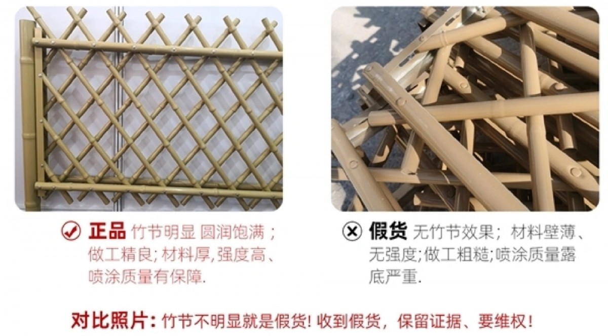 但是近年来由于行业发展迅猛,仿竹护栏等产品应用地越来越广泛,很多商家也看到了行业中存在的商机,纷纷选择加入进来试图分一杯羹。然而很多商家由于自身加入进来的时间较晚,一方面没有充足的研发、创新时间,另一方面不愿意去过多地投入,导致生产出来的产品并不能受到买家认可。这种情况下,有的商家开始动起了歪脑筋,在给客户看产品的宣传图时,直接用起了和弘更产品十分类似的图片,有的商家甚至改都不改,直接用弘更产品的原图,这不仅侵犯了弘更的知识产权,更是对客户造成了一定的欺骗和误导,未来更是可能对行业发展造成影响和冲击。