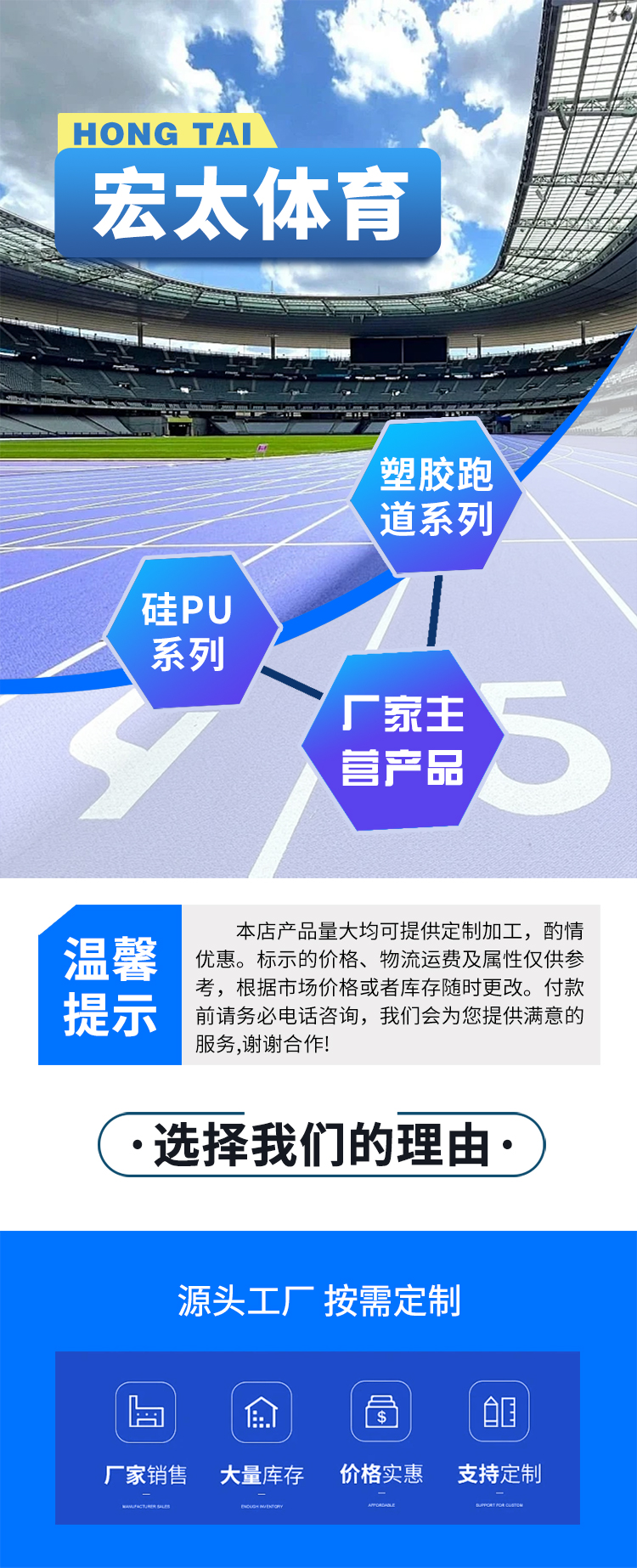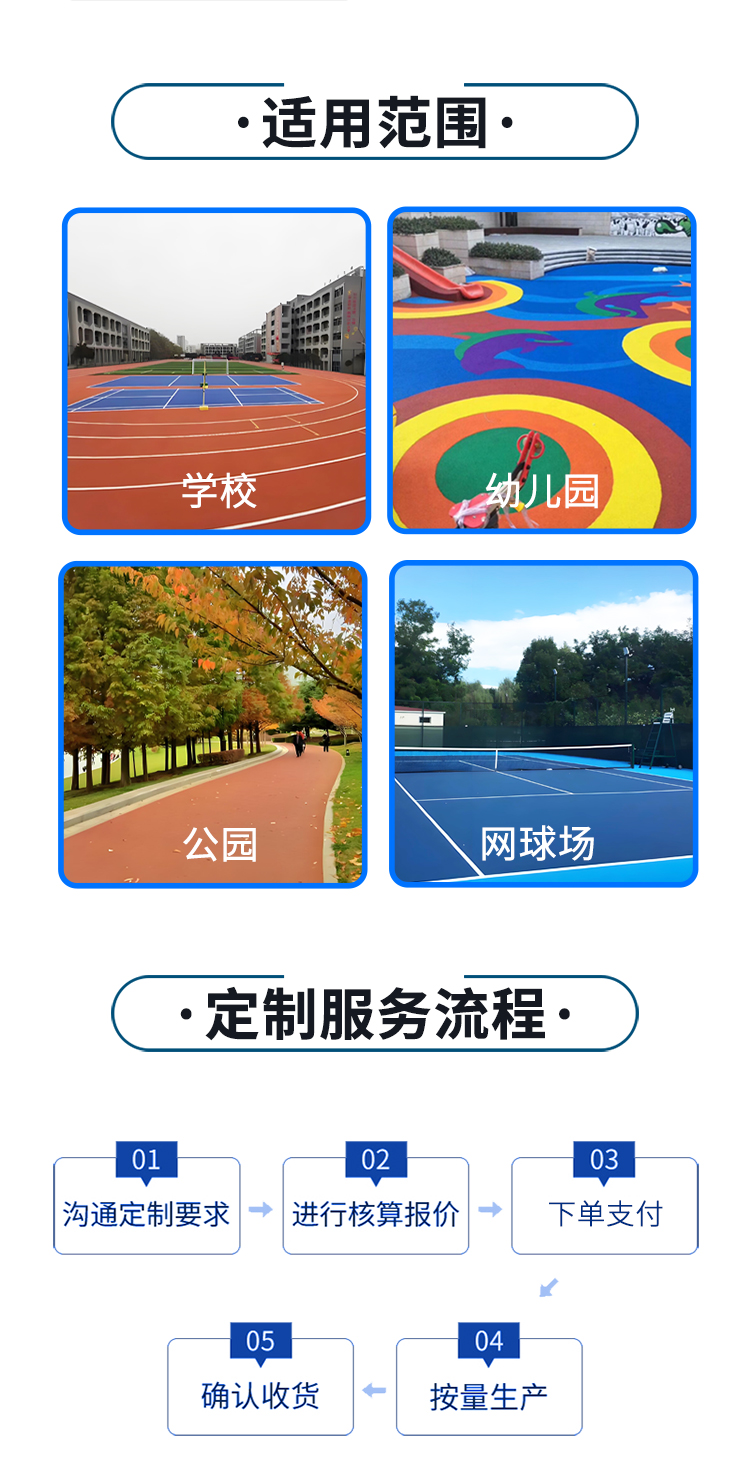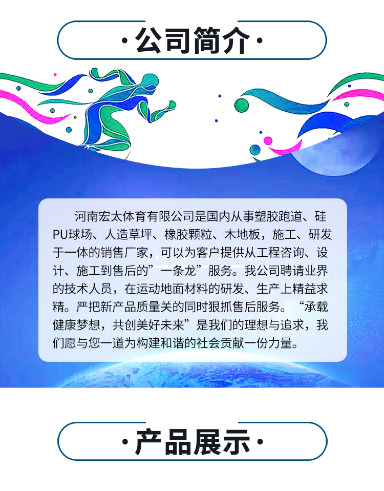 公司主营:Custom塑胶track铺设,硅PU场地and other sports equipment