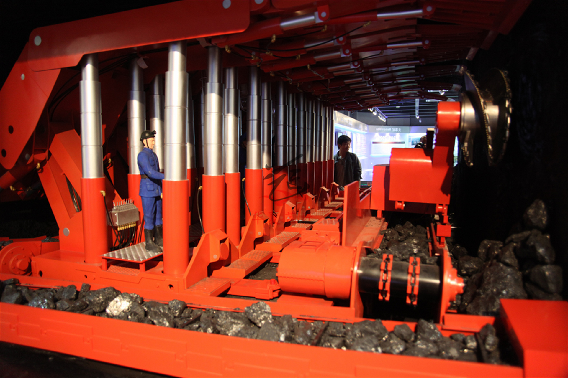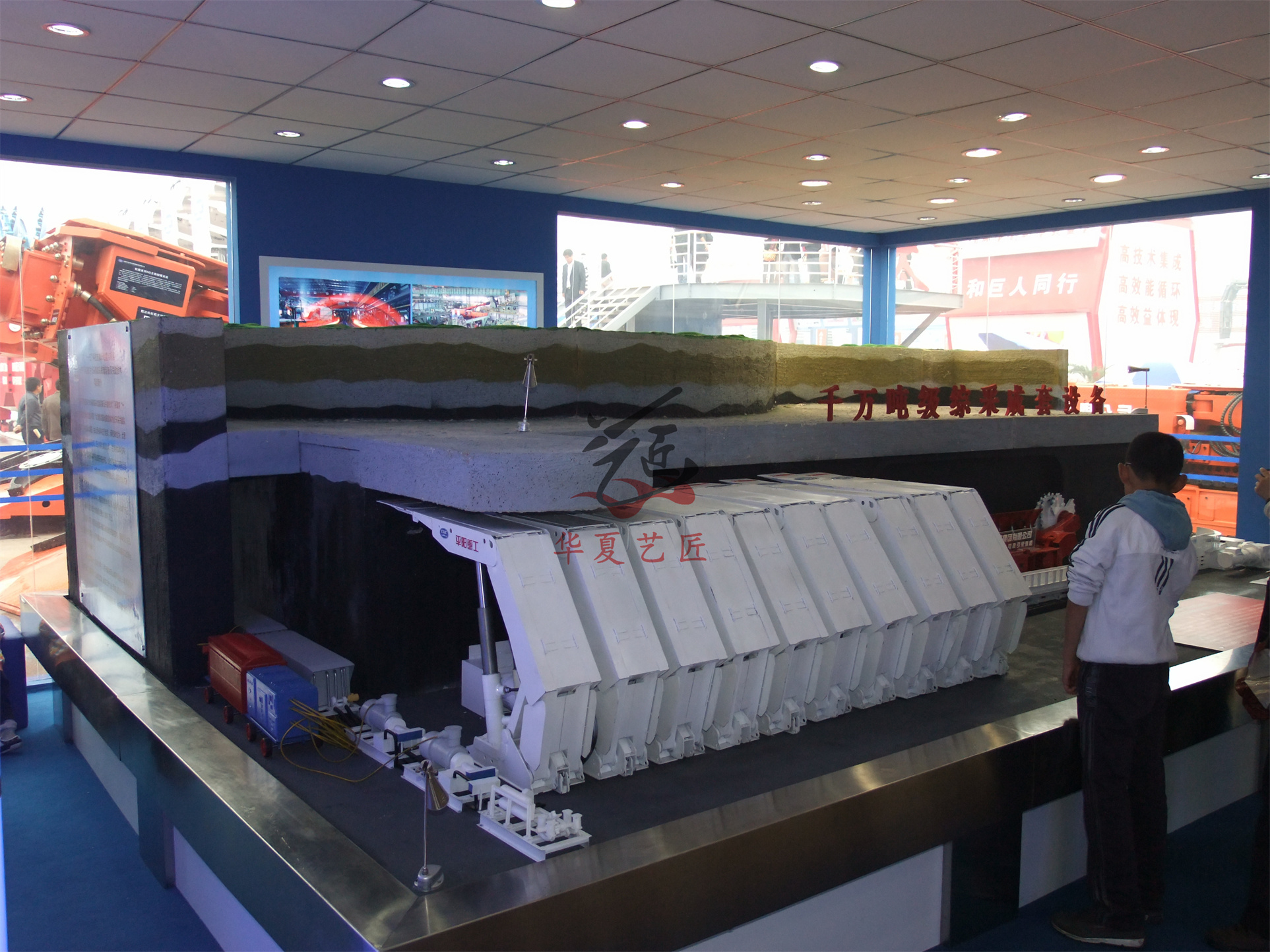 The system consists of multi-layer overlying strata (direct roof, old roof), strata caving and resetting mechanism, driving motor, functional controller, and the mobile execution structure of the matching hydraulic supports, which can simulate the process of overlying strata caving and deformation as the mining face advances and the hydraulic supports are moved forward. To achieve its functions, the control part adopts an automatic control technology combining computers with PLC. The two coal mining methods are arranged in one working face for separate demonstrations.