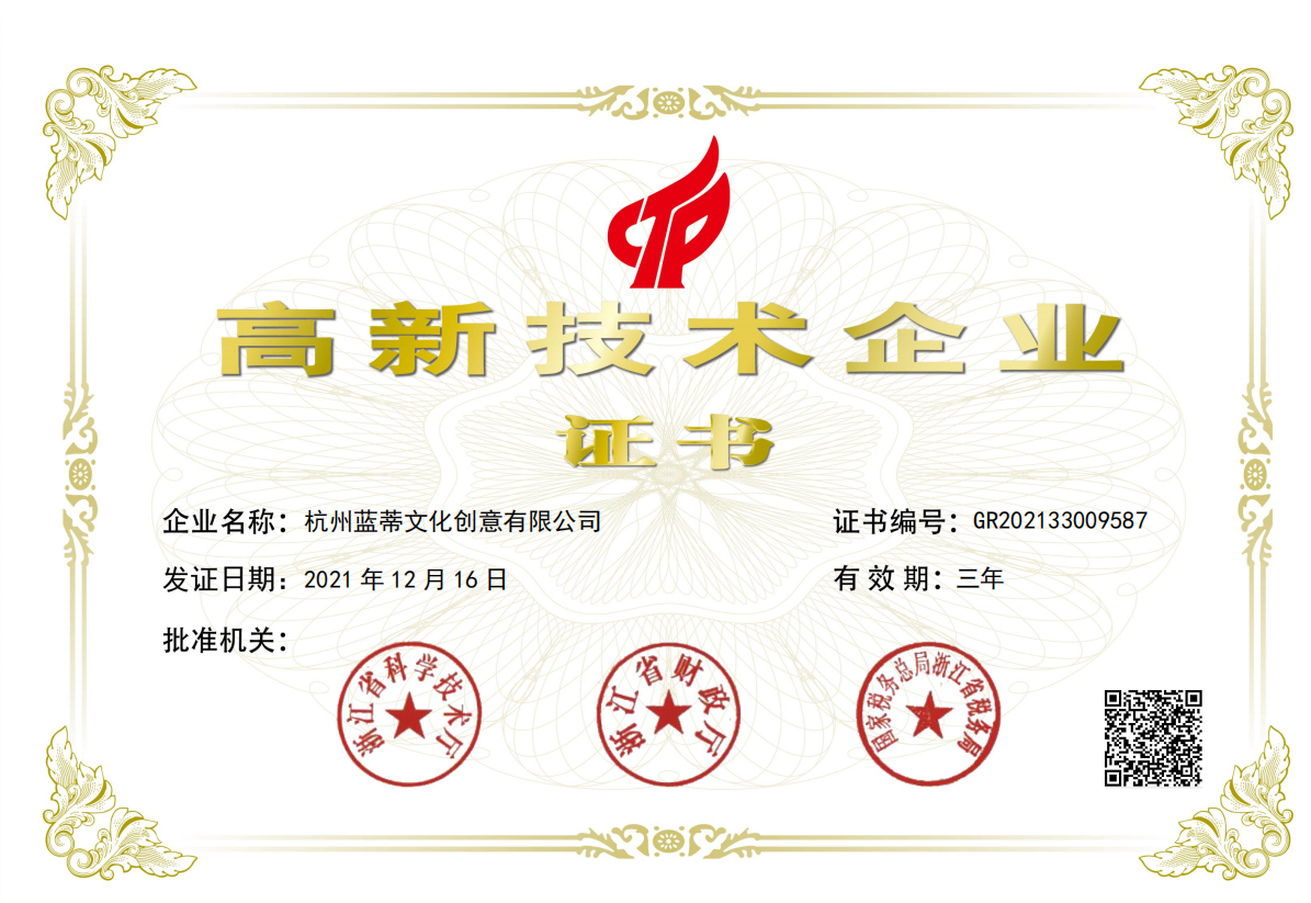 | 发证机构: | 浙江省科学技术厅 | 发证时间 : | 2021-12-16 |