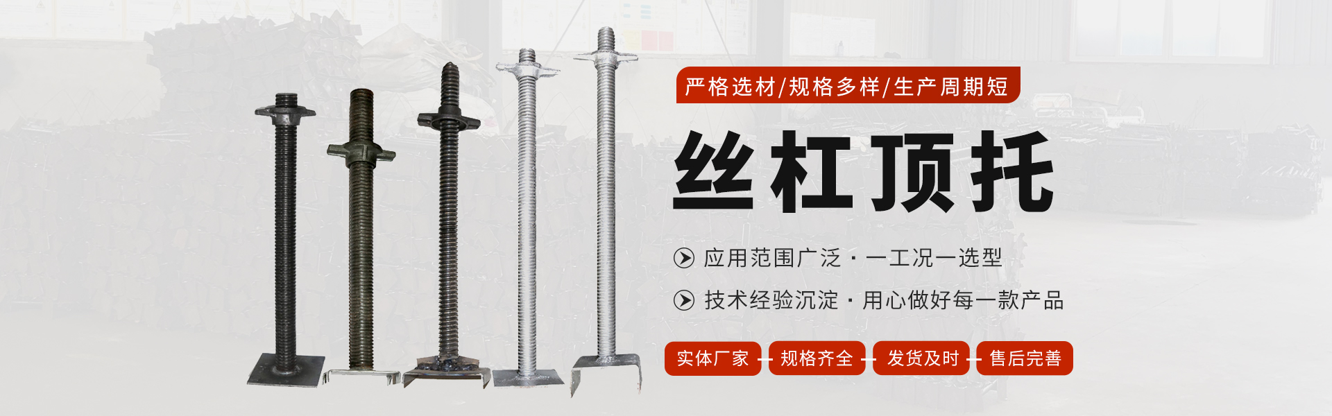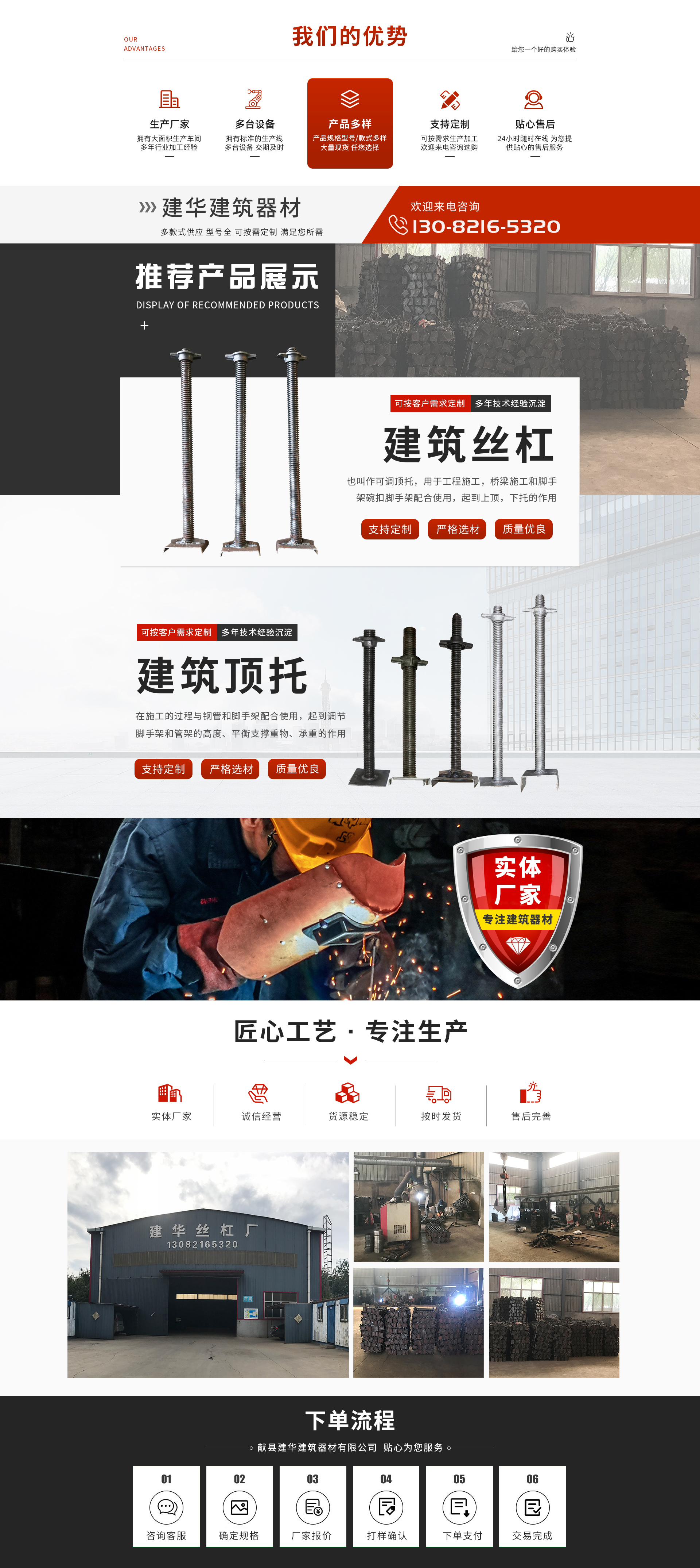 献县建华建筑器材有限公司主营丝杠、U型丝、穿墙螺丝、步步紧、止水钢板、脚手架、轮扣、碗扣等金属建材,产品规格多样,型号齐全。欢迎广大新老顾客来电咨询,我们将为您提供优良的产品及服务。