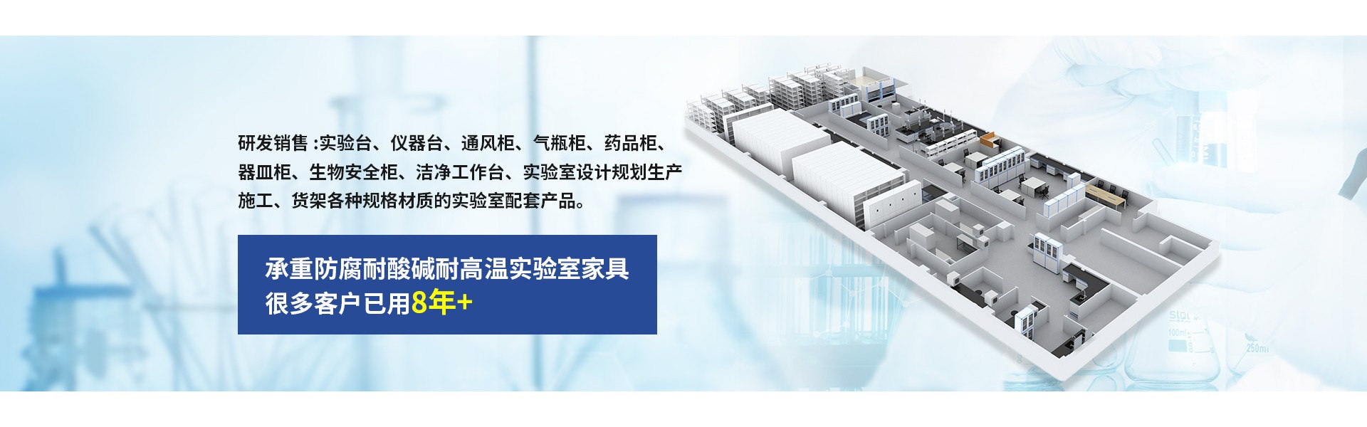 公司主营:Laboratory Tables | Fume Hoods | Lab Desks | Laboratory Ventilation Projects | Laboratory Construction | Laboratory Renovation