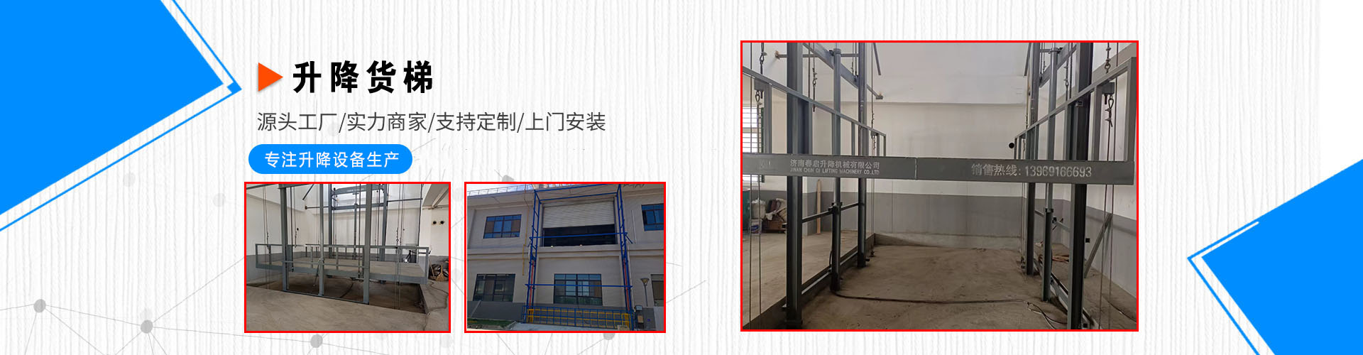 Jinan Chunqi Elevator Equipment Co., Ltd. is situated in the hometown of elevator platforms in Shandong Province, Jinan City, Jiyang Economic Development Zone, China. The company has a registered capital of 15 million yuan and is a leading manufacturer of elevators, elevator platforms, vehicle loading bridges, and freight elevators in China. We are a strong producer of Jinan elevators and Shandong elevators. Jinan Chunqi Elevator Equipment Co., Ltd. boasts domestically produced equipment and a robust technical force. Currently, we can produce 15 series of over 180 types of elevator equipment products, with mobile elevators and aluminum alloy elevators having achieved mass production capabilities and offering bulk inventory for wholesale. Chunqi electric elevators offer reasonable pricing, with fixed elevators, hydraulic elevators, scissor lifts, and guide rail elevators distributed nationwide, receiving unanimous praise from customers.
