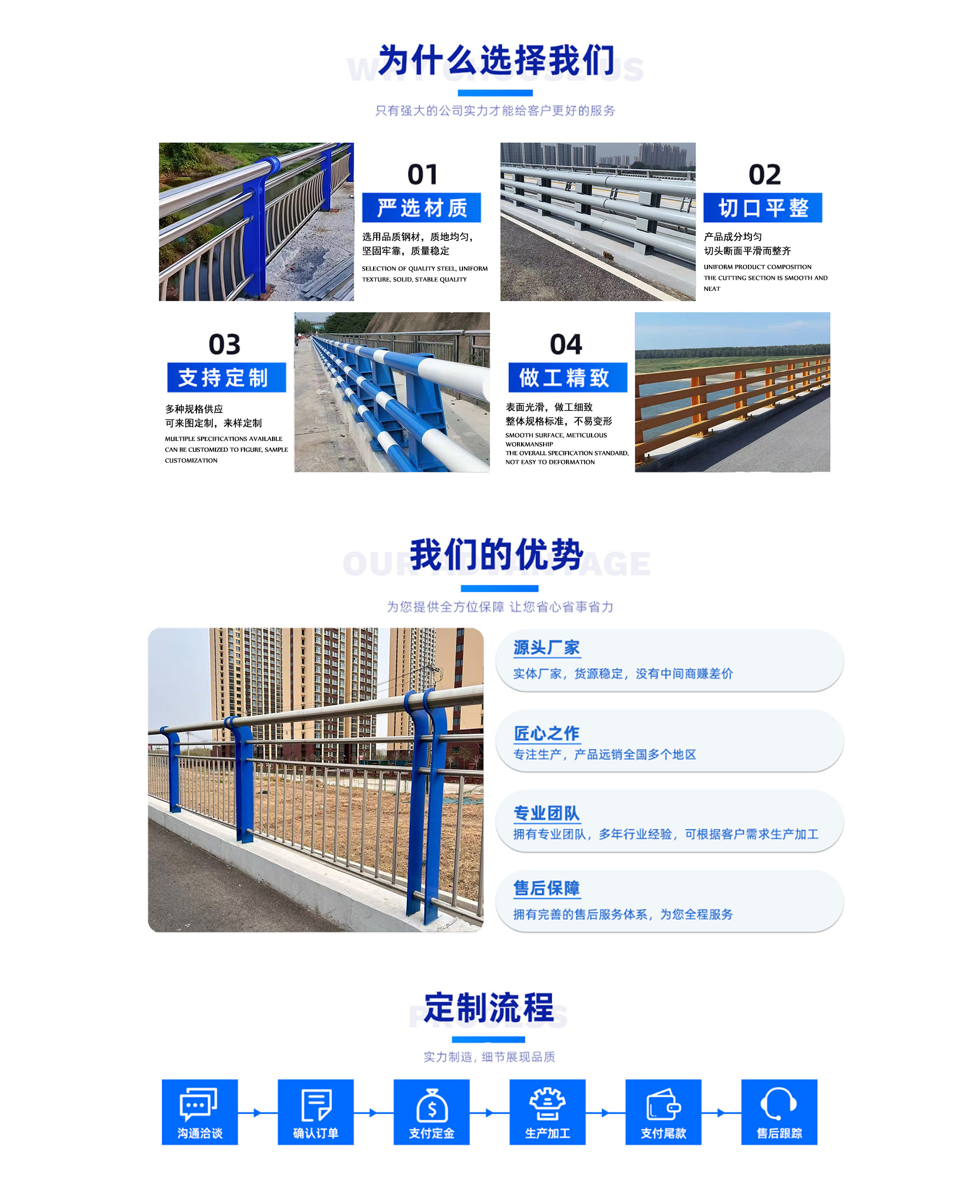 Jiaozhou City Jusheng New Material Technology Co., Ltd. is a professional manufacturer of stainless steel bridge anti-collision guardrails, integrating design, production, sales, and installation. Our main products include bridge guardrails, stainless steel guardrails, stainless steel railing guardrails, stainless steel anti-collision guardrails, bridge railing, bridge anti-collision railing, stainless steel bridge guardrail, bridge railing, river bank guardrails, anti-collision railing, river bank railing, lighting guardrails, lighting railing, landscape guardrails, landscape railing, walkway guardrails, walkway railing, 304 stainless steel composite pipes, stainless steel composite pipe guardrails, 201 stainless steel composite pipes, stainless steel carbon steel, stainless steel composite pipes, and more. Since our establishment, we have always prioritized product quality, earning the trust of our customers. Our company has always upheld product quality, enhanced our busines...