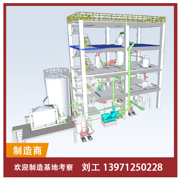 Film Evaporator, suitable for low-temperature concentration in industries such as milk, glucose, starch, xylose, pharmaceuticals, chemical engineering, biotechnology, environmental protection engineering, and waste liquid recycling. It is also widely used for waste liquid treatment in these industries. Particularly suitable for thermosensitive materials, the equipment operates continuously under vacuum and low-temperature conditions, featuring high evaporation capacity, energy saving, low operating costs, and ensuring the material remains unchanged during the evaporation process.