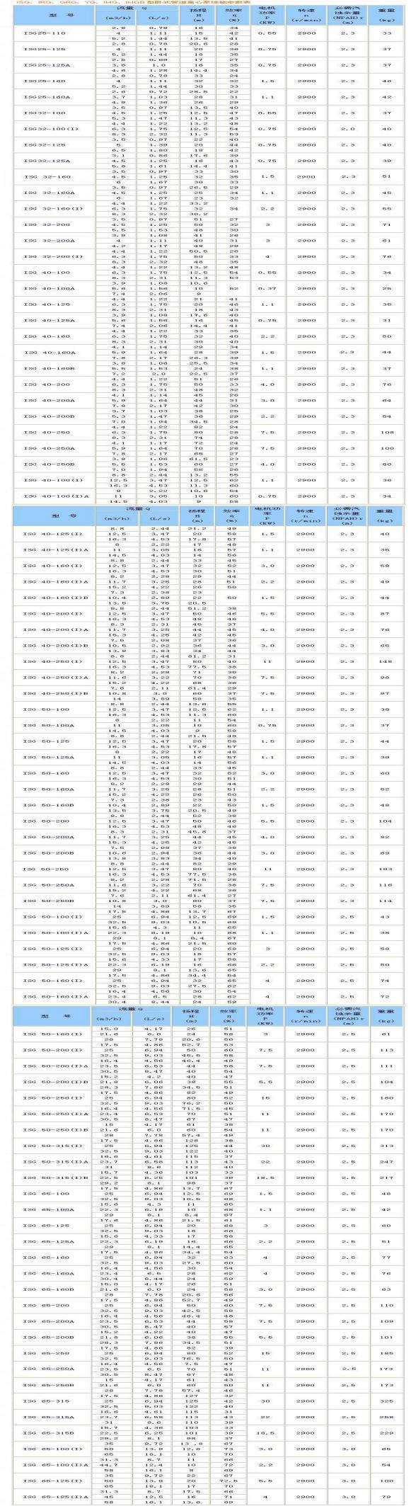 六、IHG(ISG)泵性能参数