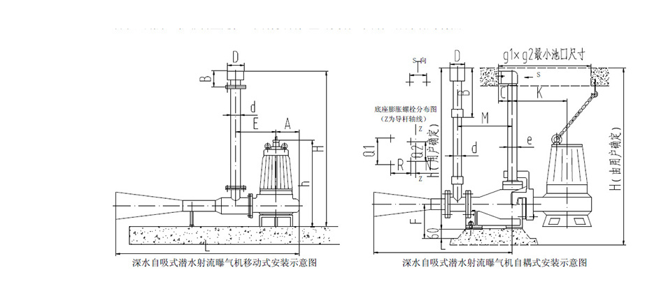 深水自吸式潜水射流曝气机移动式安装尺寸: