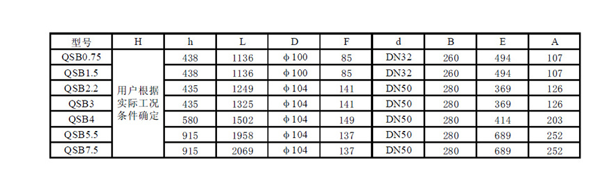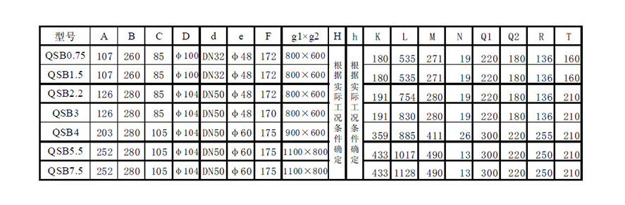 型号 | QSB0.75 | QSB1.5 | QSB2.2 | QSB3 | QSB4 | QSB5.5 | QSB7.5 |
