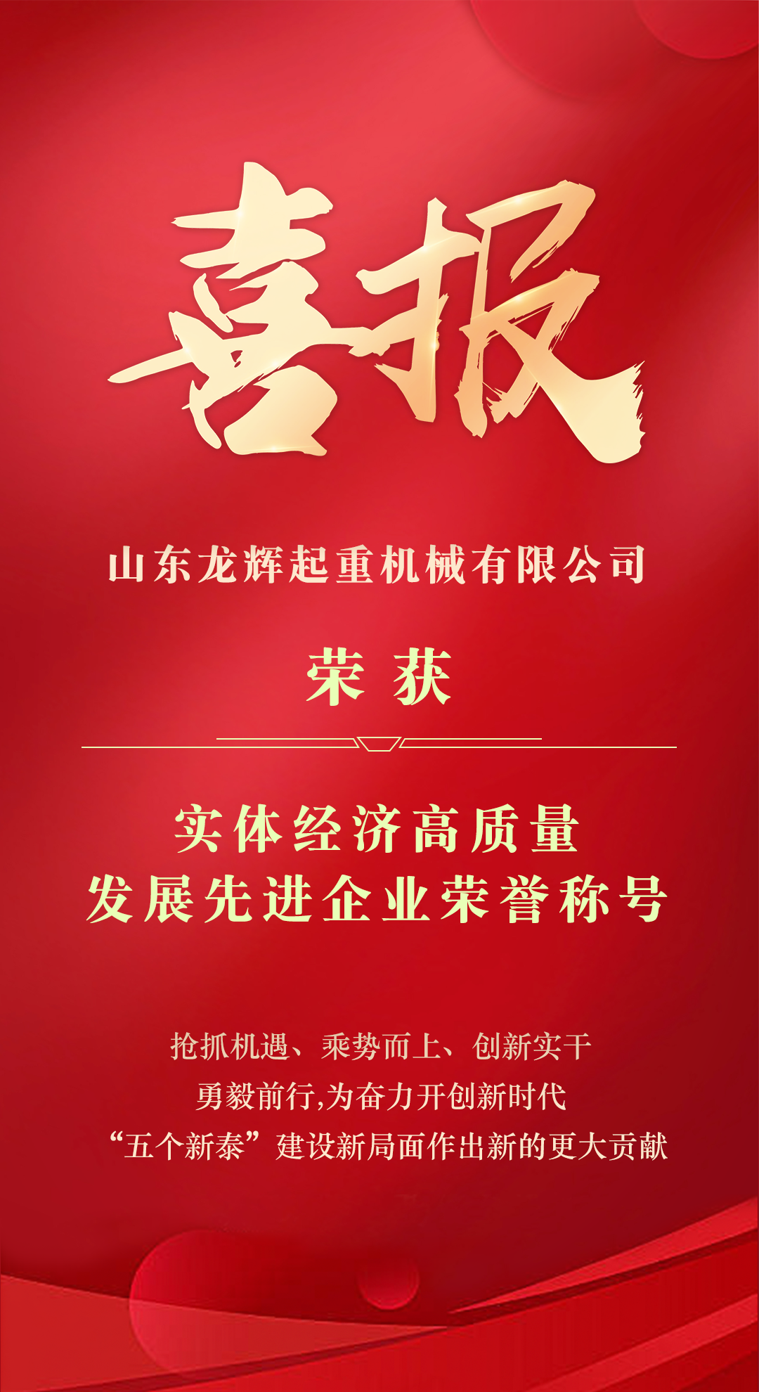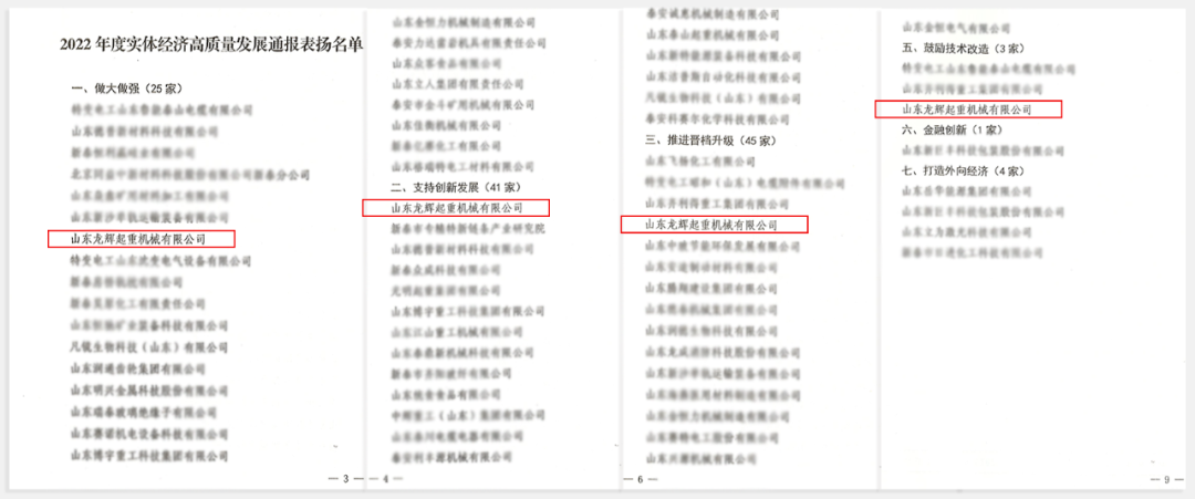 山东龙辉起重机械有限公司凝心聚力、积极作为,共有7项工作获得我市支持实体经济高质量发展财政激励政策中四项奖励,获奖类别及单项数量列全市首 位,资金奖励列全市第三。