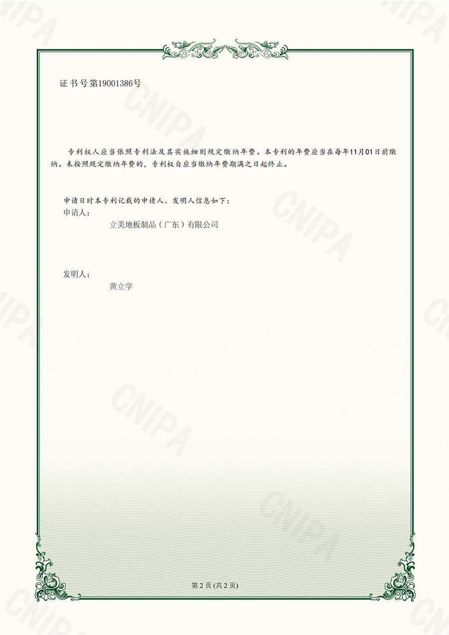 一种透气型体育运动木地板_荣誉资质_立美地板制品(广东)有限公司
