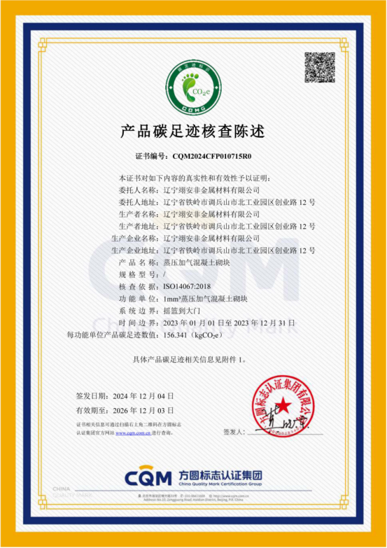 《产品碳足迹核查陈述》_Honor Qualification Co., Ltd._Liaoning Yian Non-Metallic Materials Co., Ltd._Zhongshang 114 Industry Resources Network