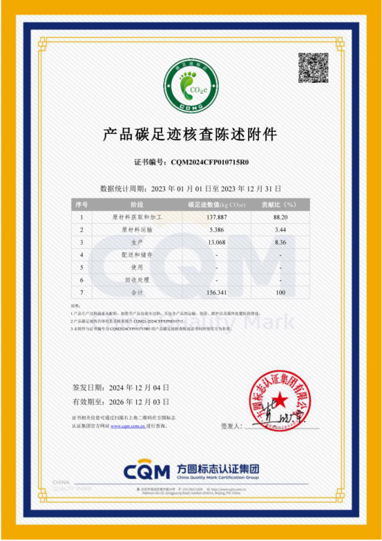 Current Location:Home>Honor Qualification Co., Ltd.> 《产品碳足迹核查陈述》