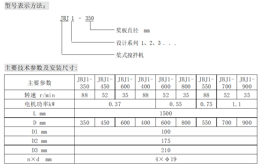 The JBJ type paddle mixer is composed of a motor, reducer, frame, mixing shaft, paddle blades, coupling, underwater support, etc. It can be categorized based on the sealing method: Type A: equipped with mechanical sealing, Type B: without sealing, Type C: other sealing methods, suitable for different sealing requirements.