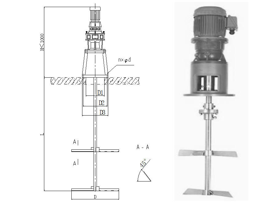 The drive unit employs a standard motor or an explosion-proof motor, a harmonic drive reducer, and the main shaft of the drive unit is connected to the stirrer shaft via a coupling. The stirrer shaft is supported by bearings, featuring sufficient strength and high stability.