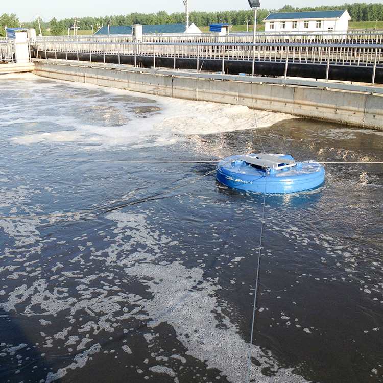 ⒉水流采用垂直大循环的流动方案,适用于较深的圆型或方型水池,搅拌污泥充分,辐射面积可达100~800平方米。