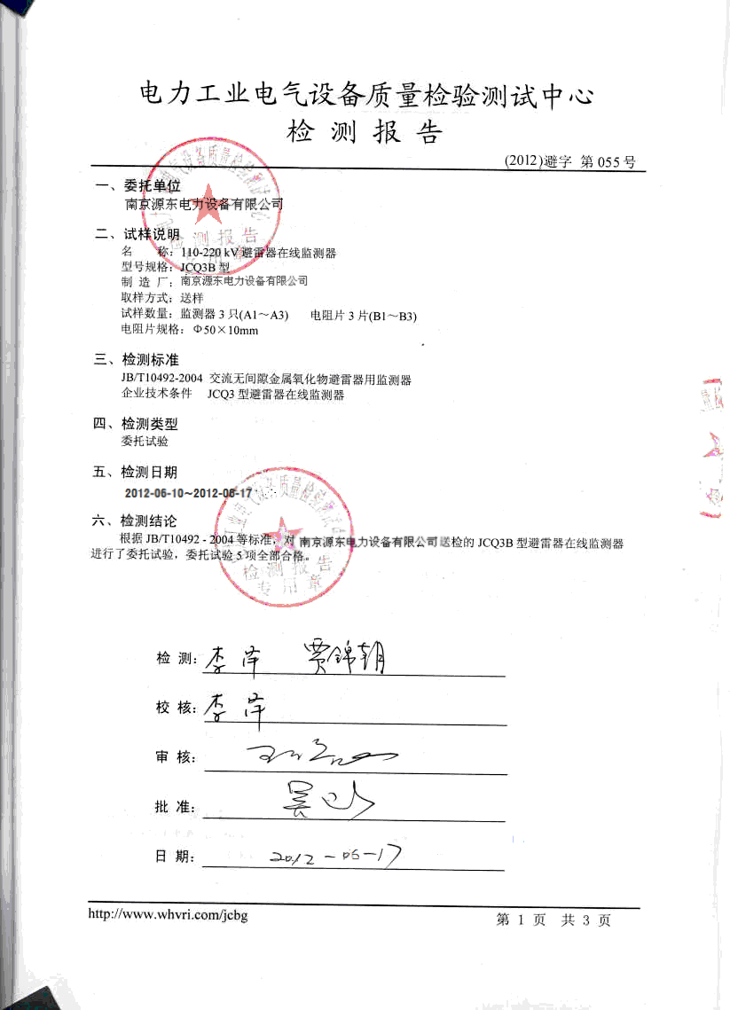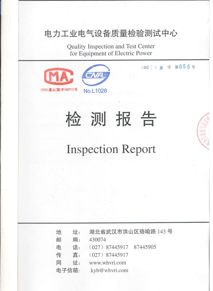 | 发证机构: | 江苏省电力工业电气设备质量检验中心 | 发证时间: | 2012-06-10 |