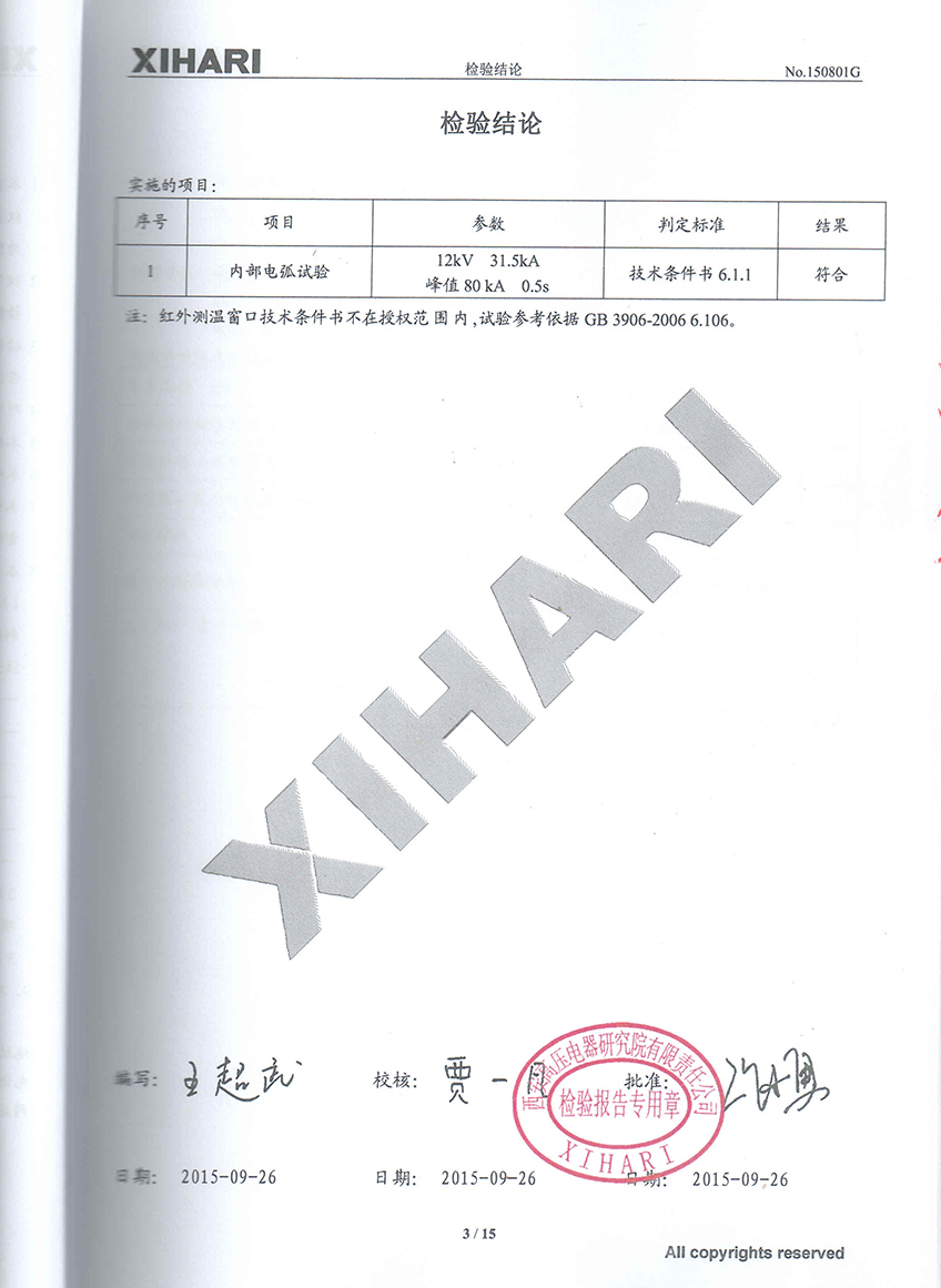 | 发证机构: | 西安高压电器研究院有限责任公司 | 发证时间: | 2015-09-26 |