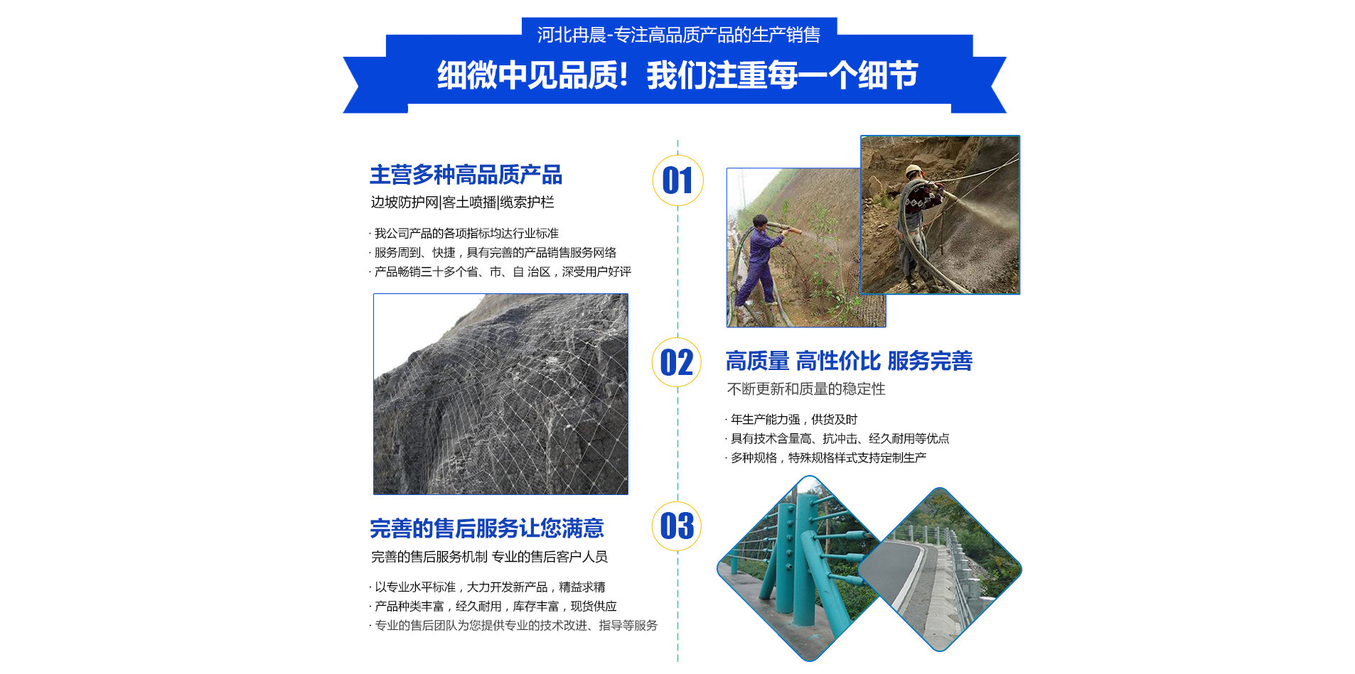 Hebei Ranchen Traffic Facilities Co., Ltd.Nestled in the renowned "Silk Screen Town" of Anping, Hebei, our company specializes in the production of...Slope Protection Mesh, Flexible Protection Mesh, Active Protection Mesh, Passive Protection Mesh, Soil Spraying, Cable GuardrailA series of products. We adhere to the principle that technology is productivity, focusing on technology and products. Our products include slope protection nets, flexible protection nets, active protection nets, passive protection nets, and other series, which are deeply trusted by users and mainly applied in embankment protection.Our factory boasts extensive production experience, ensuring our products are refined to perfection and of reliable quality. We have always served our customers with a commitment to excellent quality, timely delivery, reasonable pricing, and attentive service. Adhering to the production principle of quality for survival and reputation for development, we have earned the praise of bo...详情介绍>>