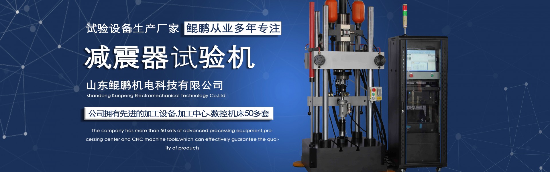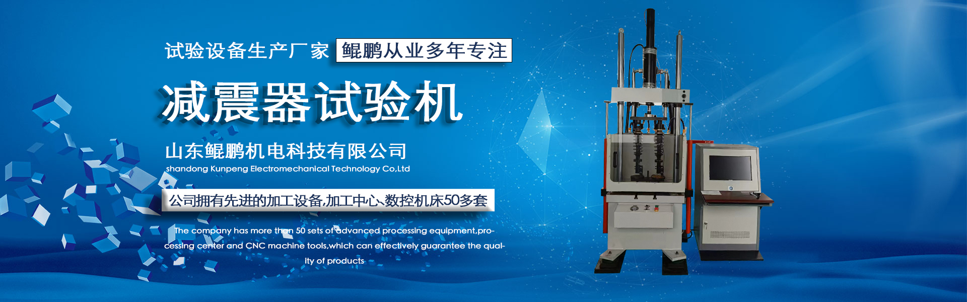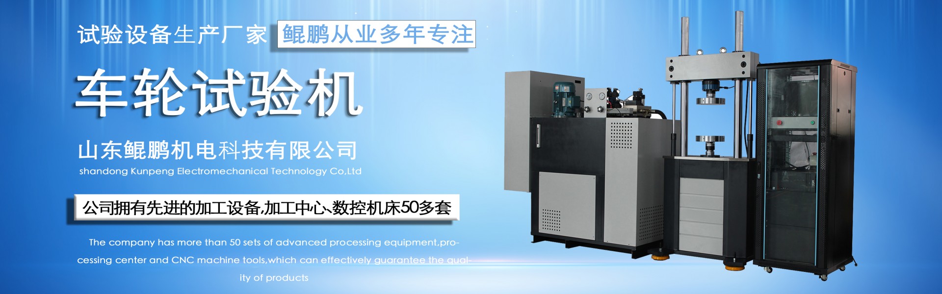 Shandong Kunpeng Electromechanical Technology Co., Ltd. is located in Jinan, the capital of Shandong Province, and is a professional domestic manufacturer of testing machines. The company has divisions for wheel production, shock absorber production, spring production, torsion testing, electro-hydraulic servo systems, and mechanical processing.The company boasts a strong technical force, continuously innovating and diligently researching. The advanced wheel testing machines, shock absorber testing machines, spring testing machines, torsional fatigue testing machines, and various electro-hydraulic servo testing machines produced are highly praised. The company is equipped with advanced processing equipment, including over 50 sets of machining centers and CNC machine tools, ensuring product quality effectively.The company adheres to the business philosophy of technological innovation, quality-first, and passionate service, striving for progress and working diligently. After nearly a d...
