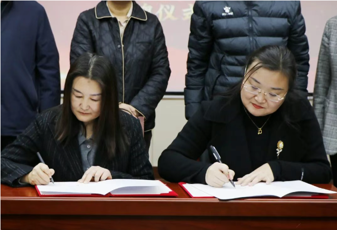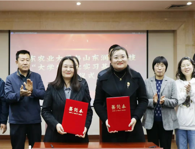 Deputy Director of Student Affairs at Shandong Agricultural University, Jiang Fang, and General Manager of Shandong Runhao Water Conservancy Technology, Zhang Hong, jointly signed the "University Student Employment and Internship Base Agreement."