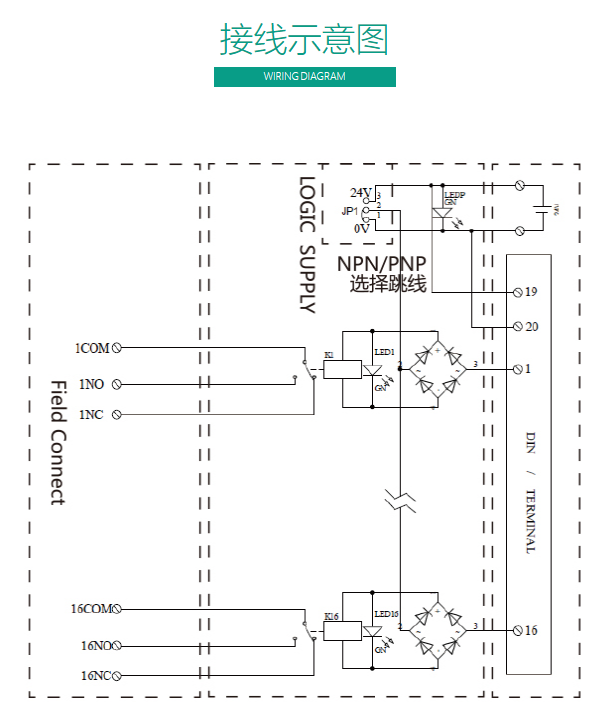① 16-channel relay isolated output ② Supports TS35 rail mounting