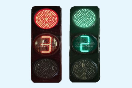 Above is a full-screen signal display with red and green, in the middle is a dual-color countdown display of red and green with a yellow full-screen signal, and the timer is shown in a single "8" shape.