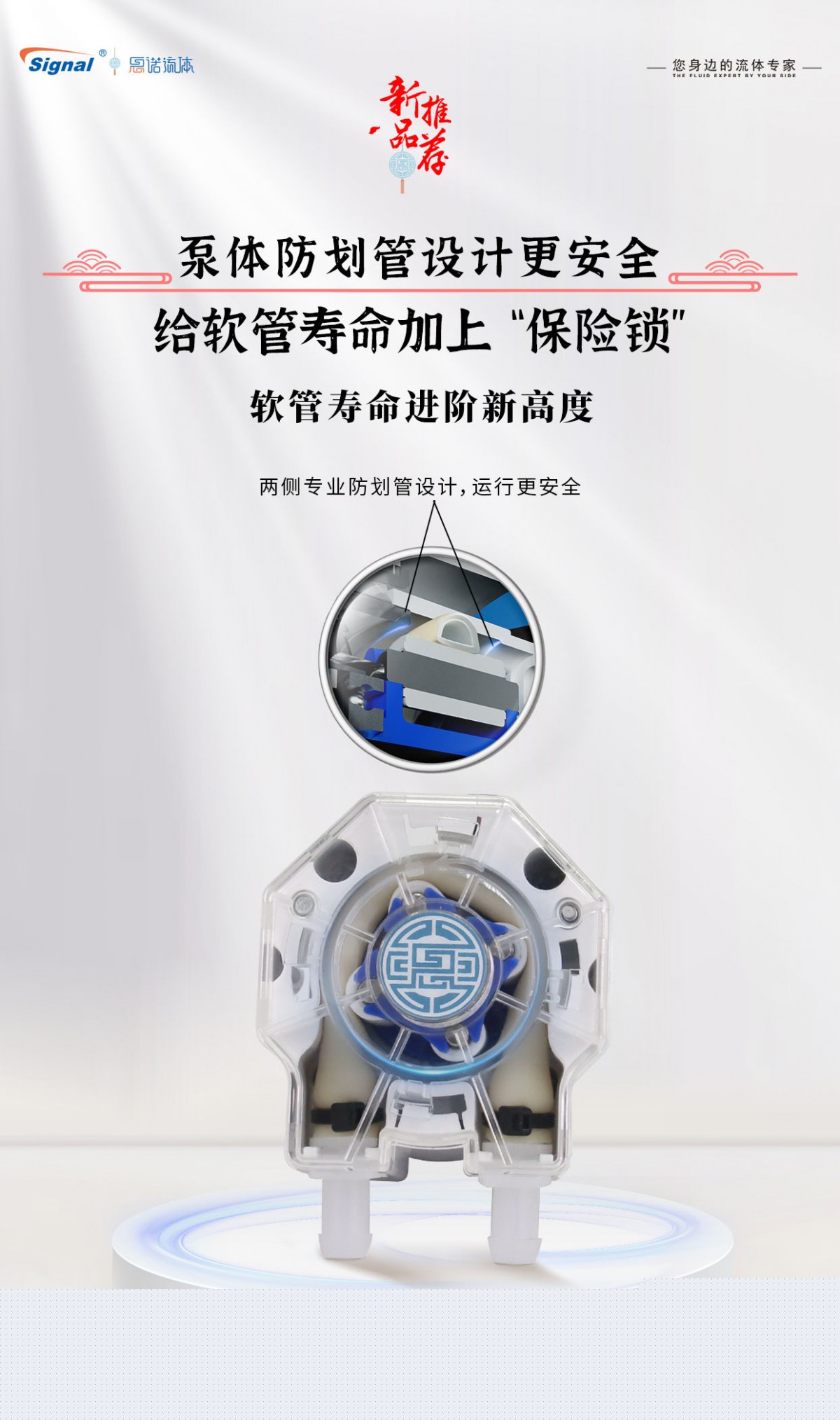 泵体防划管设计,提高软管寿命;![]()