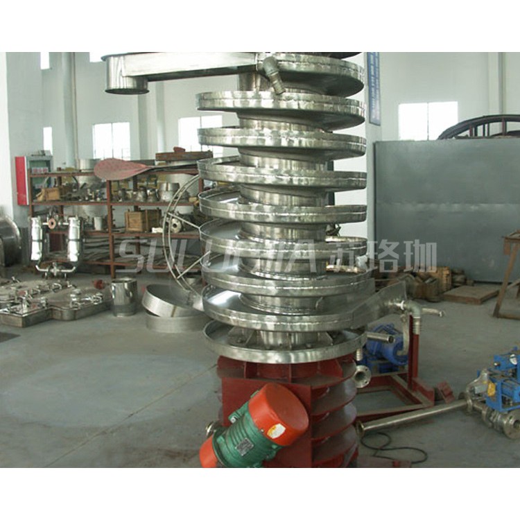 The wet material enters the spiral bed through the top feeding port. Under the action of the circumferential vibration force and gravity, the material jumps downwards along the spiral bed until the bottom level. Meanwhile, clean hot air enters from the bottom of the spiral bed, undergoes sufficient heat and mass transfer with the material distributed on the bed, and is then exhausted through the top drying port. This process achieves the drying purpose of the material.