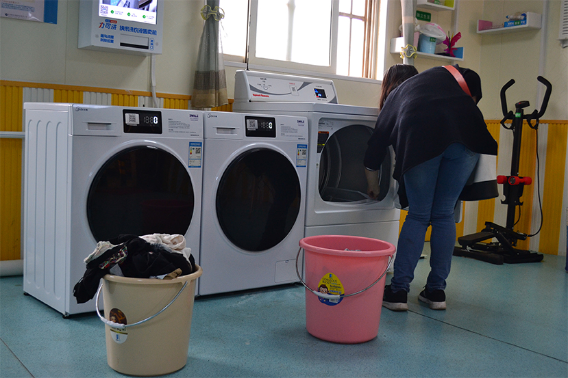 校园运行中的其中一个自助洗衣房实景一
