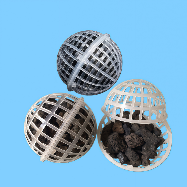 Biological Suspended Sphere FillerSuitable for domestic wastewater and petrochemical water treatmentSuspension-Type Bio-SphereThe filler is a new type of porous spherical suspended filler, which is a new series developed from various fillers used in the domestic treatment of wastewater and biofilm processes. Made of polyethylene or polypropylene materials, it consists of an inner and outer double-layered sphere. The outer layer is a hollow fishnet-shaped sphere, while the inner layer is a transformed sphere. It is easy to generate and replace microorganisms, acid and alkali resistant, anti-aging, unaffected by water flow, with a long service life and minimal residual sludge. It is easy to install and widely applicable in the treatment of industrial wastewater, including domestic wastewater, petrochemicals, light industry and papermaking, food industry, brewing, sugar production, textiles, dyeing and printing, leather, pharmaceuticals, and more.