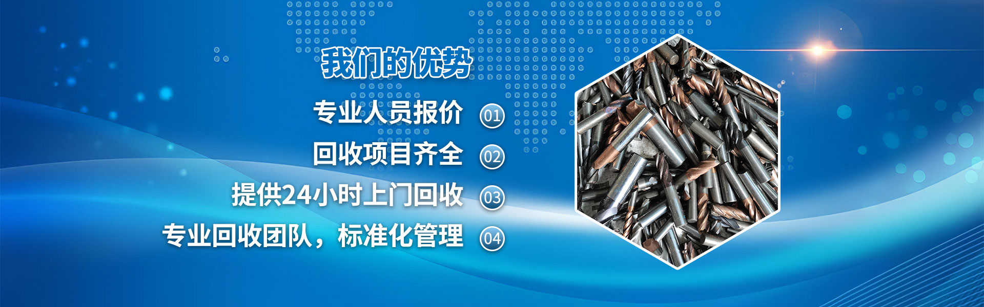 Company Introduction:We offer nationwide door-to-door collection services and have established recycling warehouses in Wuxi, Jiangsu Province, and Bengbu, Anhui Province!Recycling Scope:All types of waste, new, and inventory items are collected.Numerical Control Inserts, Alloy Milling Cutters, Tungsten Carbide Drill Bits, Alloy Milling Inserts, Welding Cutters, Tungsten Carbide Shaping Cutters, Tungsten (Hardmetal) Powder, Tungsten Paste, Tungsten Wires, Tungsten Copper, High-Density Tungsten Carbide, Tungsten Carbide Bars, Tungsten Carbide Scrap, PCB Micro Drills, Alloy Pins, Ball Gears, Cutter Teeth, Wire Drawing Dies, Tungsten Carbide Rolling Mill Wear Parts, etc.2: Thread taps, drill bits, saw blades, lathe cutters, reamers, end mills, circular saw blades, stainless steel blades, high-speed steel punches, etc.Molybdenum wire, rods, target materials, sheets, scrap, electrode rods, molybdenum iron, pure molybdenum, etc.4: A variety of cutting tools, blades, measuring tools, and in...