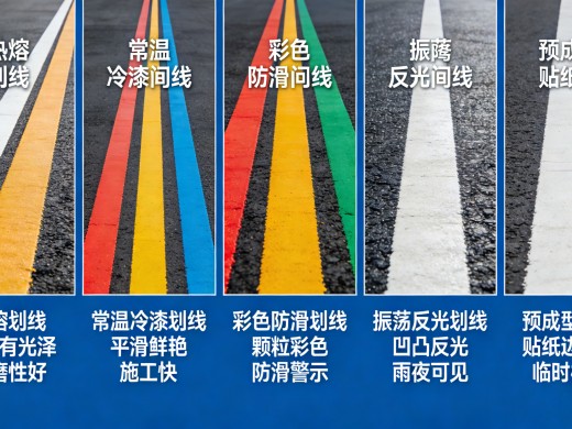Road marking includes various types such as hot melt marking, ambient temperature cold paint marking, colored anti-slip marking, oscillating retroreflective marking, and pre-formed marking, which collectively form the road marking system.Various lines, arrows, signs, text, and three-dimensional m...