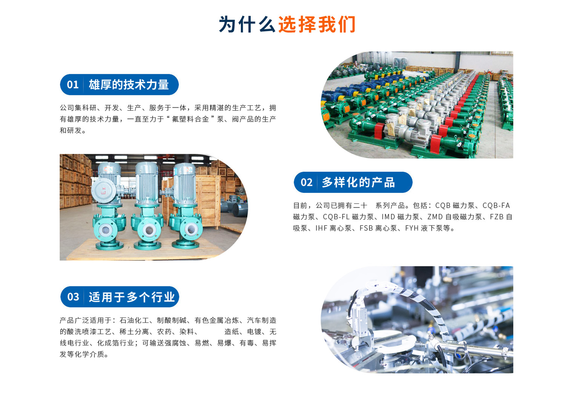 Anhui Wolong Fluoroplastic Pump Valve Co., Ltd. is located in Jingxian County, Anhui, a major domestic fluoroplastic production base. It was one of the first companies in China to introduce the material "fluoroplastic alloy" from the Shanghai Institute of Organic Chemistry, Chinese Academy of Sciences, and uses this corrosion-resistant material to manufacture chemical pumps, valves, fluorine-lined pipelines, and other products. The company integrates scientific research, development, production, and service, employs exquisite production techniques, boasts strong technical capabilities, and provides comprehensive sales and service.The company has been committed to the production and research and development of "fluoroplastic alloy" pumps and valves. Currently, the company boasts twenty product series, including: CQB Magnetic Pumps, CQB-FA Magnetic Pumps, CQB-FL Magnetic Pumps, IMD Magnetic Pumps, ZMD Self-Priming Magnetic Pumps, FZB Self-Priming Pumps, IH Centrifugal Pumps, FSB Centr...