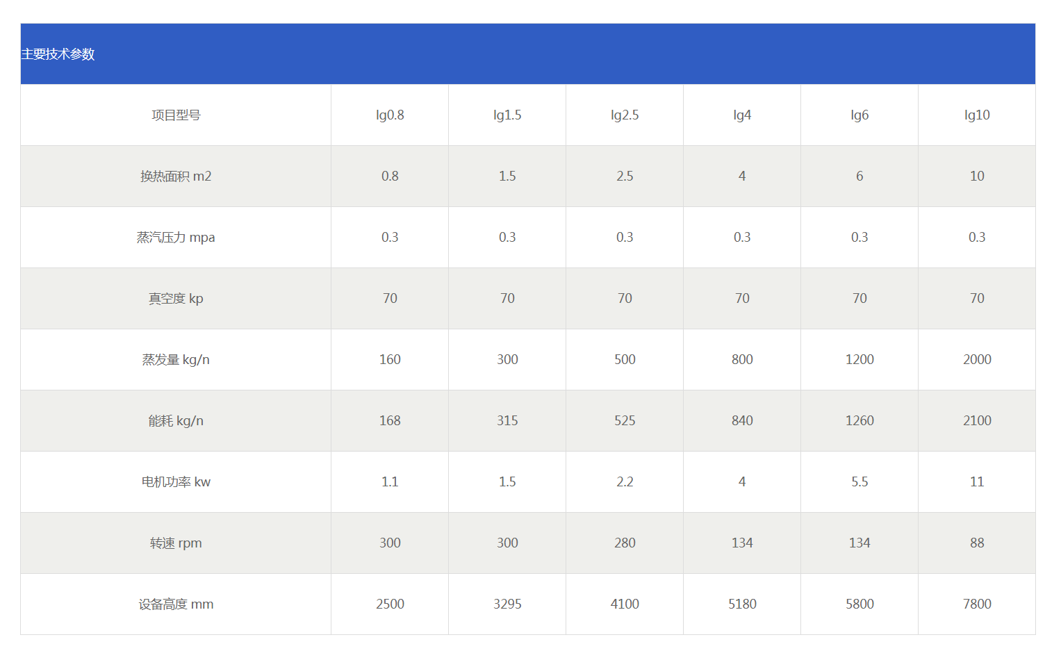 Equipment specifications and main parameters